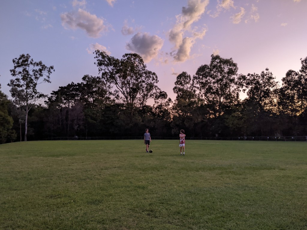 The kids went well yesterday. A was very calm and composed, taking himself off to [high] school by himself. E did really well too, playing with another new kid and then with older kids on the basketball court, even scoring a basket. Phew – they’re gonna be okay!