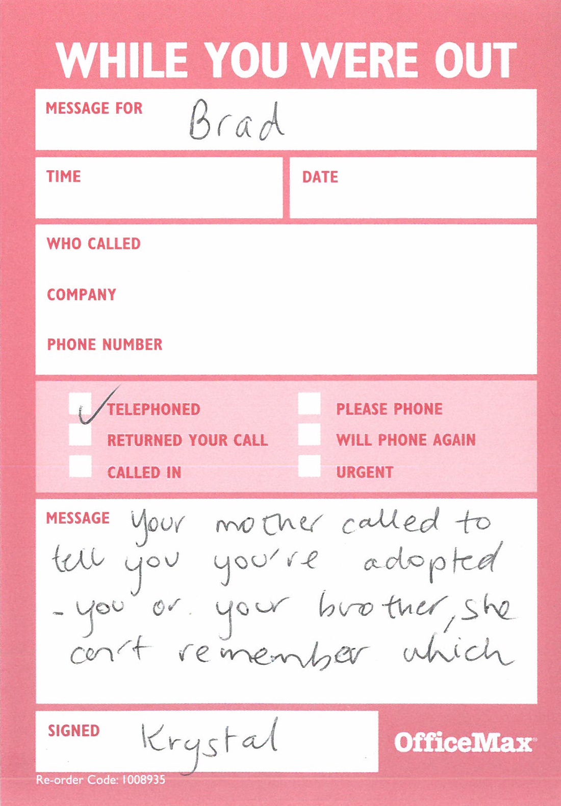 Here, then, is a message I removed from a desk today. Brace yourself…